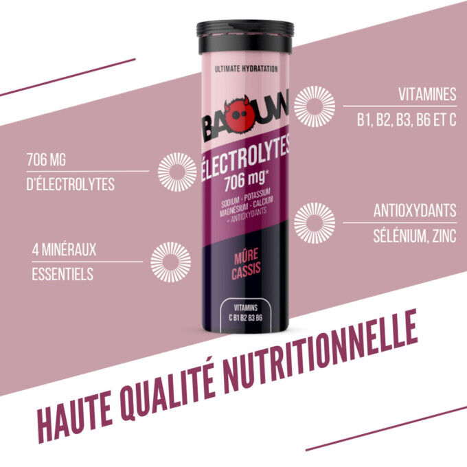 Baouw Blackberry & Blackcurrant Electrolyte Tablets support you in all your sporting challenges. Functional hydration, an ultra-natural formula and an intense fruity flavor: everything you need to support your performance without compromise.