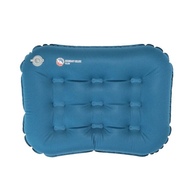 The Boundary Deluxe Pillow from Big Agnes is an ergonomic and durable inflatable pillow designed for outdoor adventures, providing comfortable support for your head and neck when sleeping in a tent.